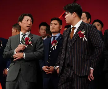 セ・リーグ連覇を果たしたヤクルト・高津監督は最優秀監督賞を2年連続で受賞した。この日は54歳の誕生日。昨年は日本シリーズ中に誕生日を迎えており「11月の終わりに2年続けていろいろなイベントがあって、おかげさまで忙しくさせていただいています」と感謝した。