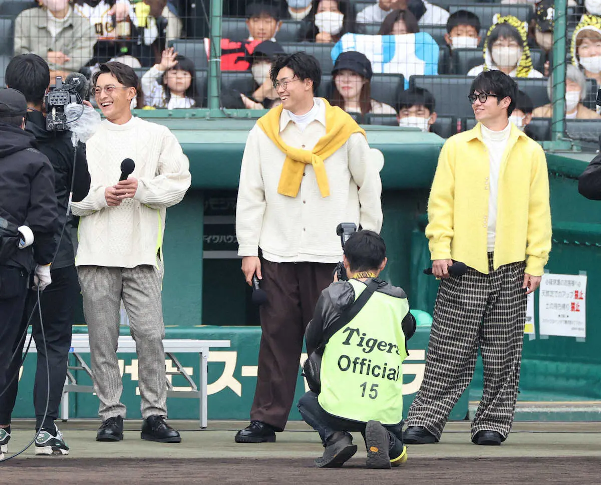 阪神の中野が“イケメン三銃士”の一角として「ファッションコーデ対決」に登場した。オーバーサイズの黄色のアウターに眼鏡を着用したコーディネートを披露。昨年まで2年間はオンライン開催だったため、甲子園球場で開催されたファン感謝デーは初参加。「オンラインとは違って目の前で見ているので、実際に名前を呼んでくれたりとか、いろいろ声もいただいた。やっぱり改めてファンの存在は大きいなと感じました」とうなずいた。