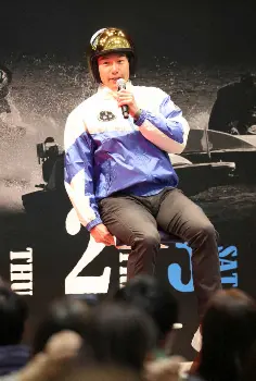 特に好きなのは、1Mのせめぎ合い。購入した舟券が的中したときのアドレナリンを好む。約15分間のトーク中もヘルメット姿を続けたのか「めちゃくちゃ重たいし、熱いですこれ。でも、この格好で行くと決めていたので」。来季の目標を30本塁打とし「来年は無事故完走で。無事故完走が一番大事なので、無事故完走。きょうはボートレース、明日からトレーニング頑張ります。当てましょう!万舟(マンシュウ)!」と叫んでご機嫌で第1部のトークショーを終えた。