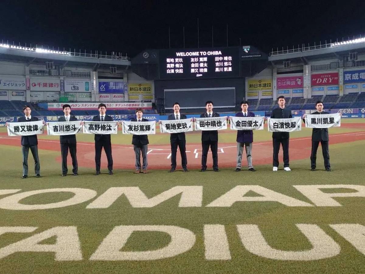 ロッテのドラフト1位・菊地吏玖投手(専大)ら、7日の新入団選手発表会に参加する9選手が6日、ZOZOマリンで施設見学を行った。