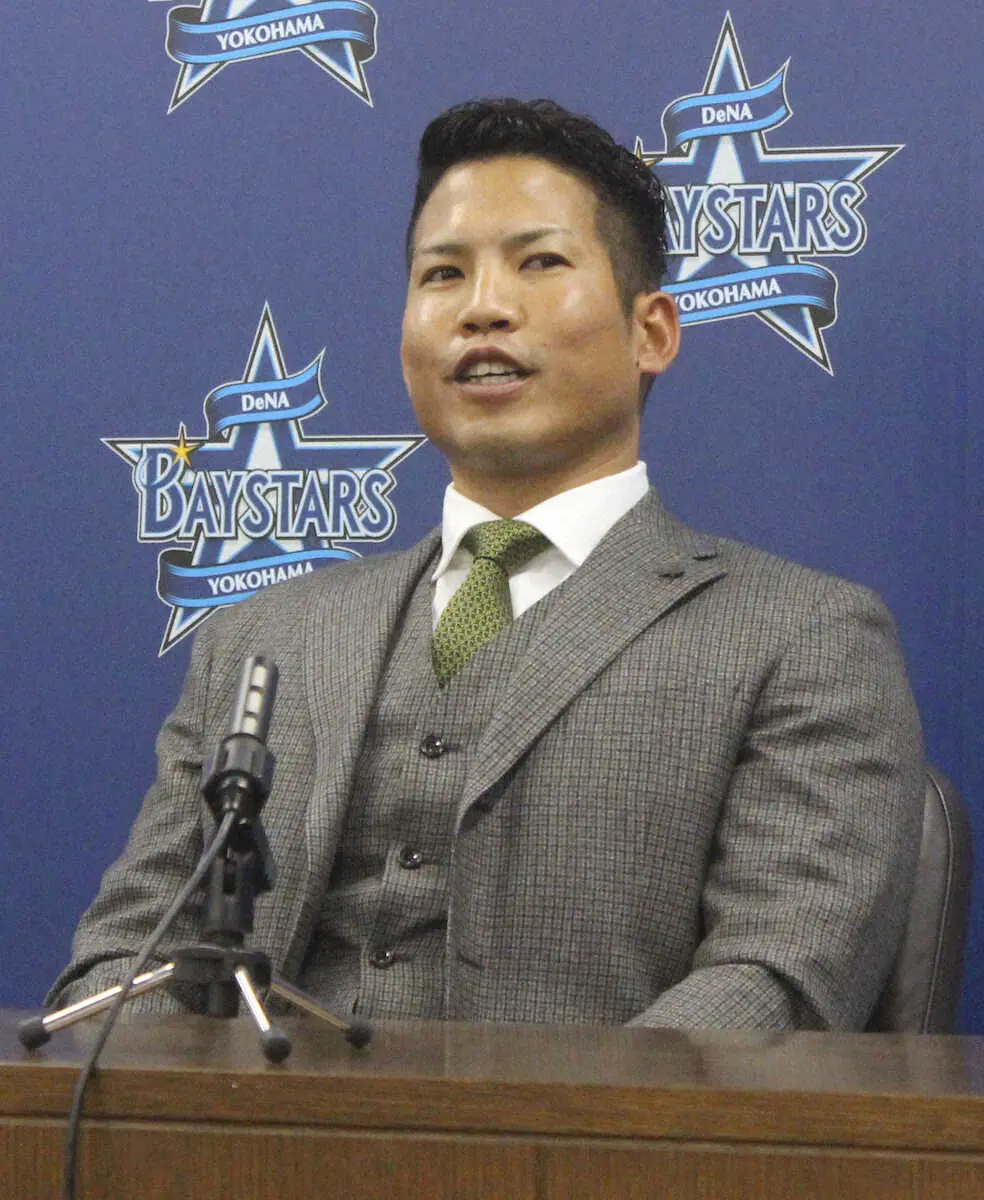 契約更改交渉を終え、記者会見するDeNAの桑原