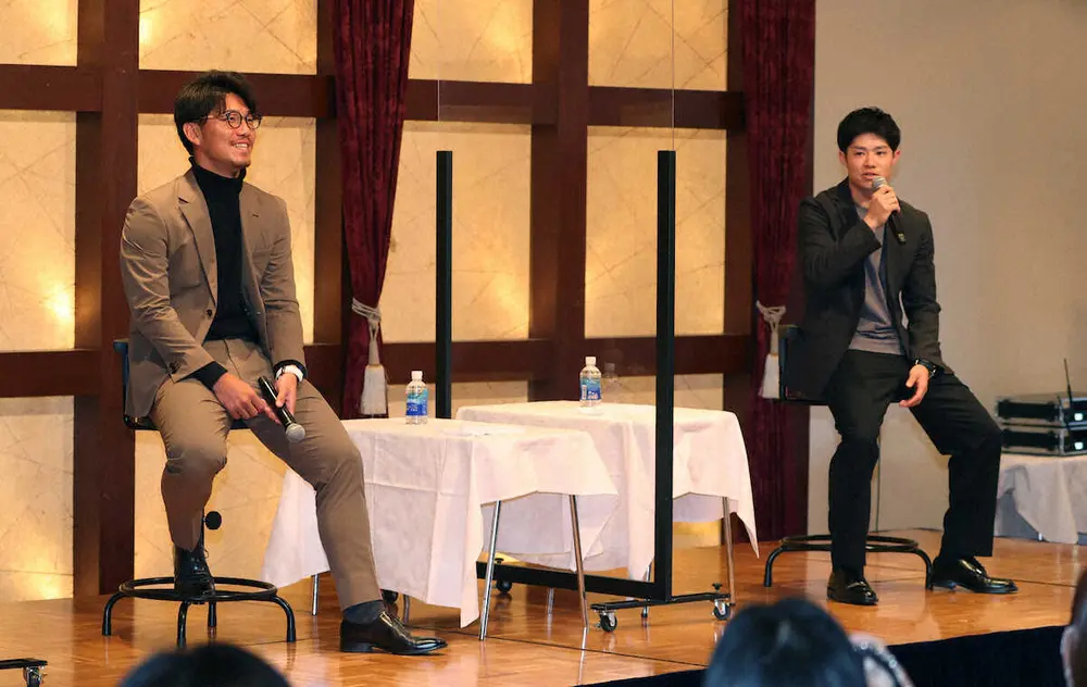 20年ドラフト同期(伊藤将は2位、中野は6位)で大学、社会人を経た同世代。今季セ・リーグ投手最多に並ぶ11犠打の伊藤将が「バントミスが多いんでちょっと教えたろかな」と冷やかせば、中野も「あまり得意じゃないので、ちょっと教えてもらいたい」と答えるなど、気の置けない掛け合いで会場を盛り上げた。(須田 麻祐子)