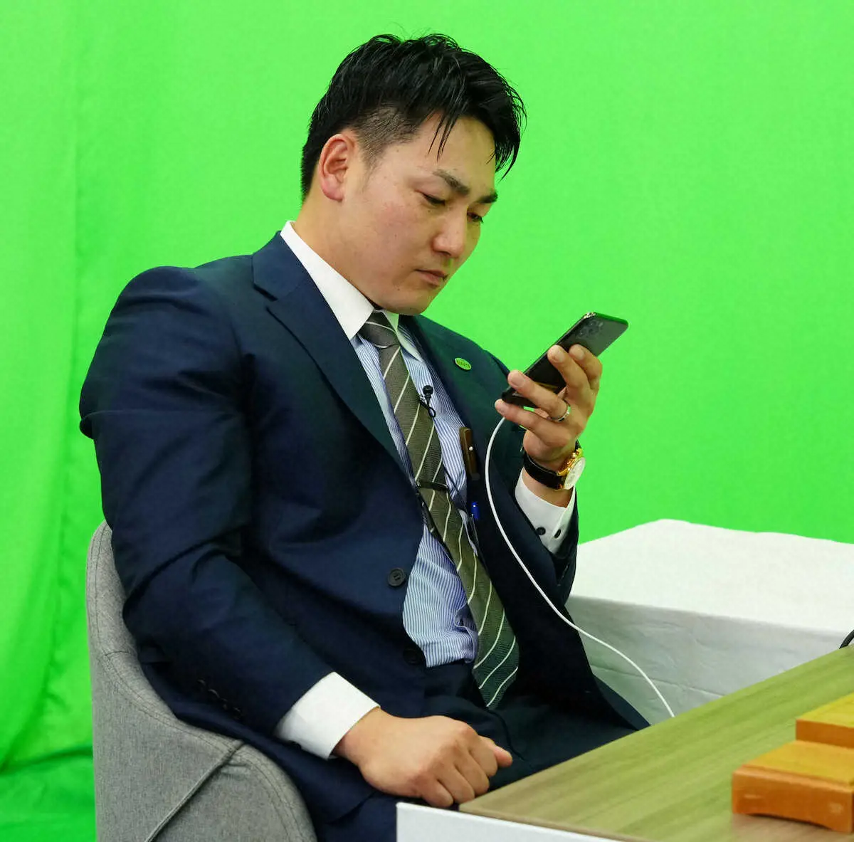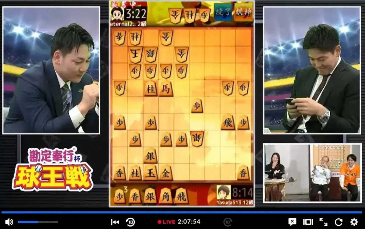 <球王戦、プロ野球最強将棋王決定戦>決勝戦で巨人・丸(左)に勝利したロッテ・安田(撮影・島崎忠彦)