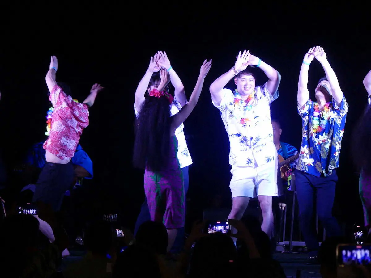 ヤクルト・村上 優勝旅行初日の祝賀パーティーでフラダンスに挑戦