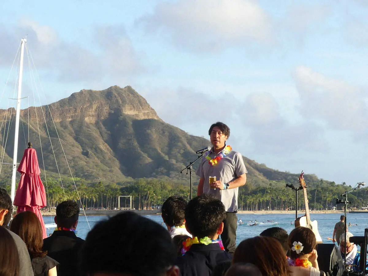 ヤクルトの選手、関係者ら総勢170人が13日(日本時間14日)、優勝旅行先のハワイに到着。夜にはリーグ優勝祝賀パーティーが開催された。