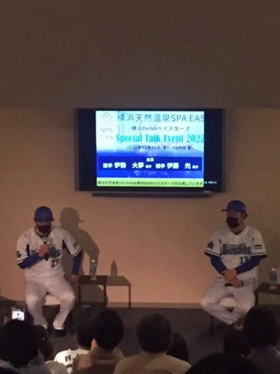 DeNAの伊藤光捕手(33)が16日、横浜市内の「横浜天然温泉SPA EAS」で同僚の伊勢とトークショーを行った。