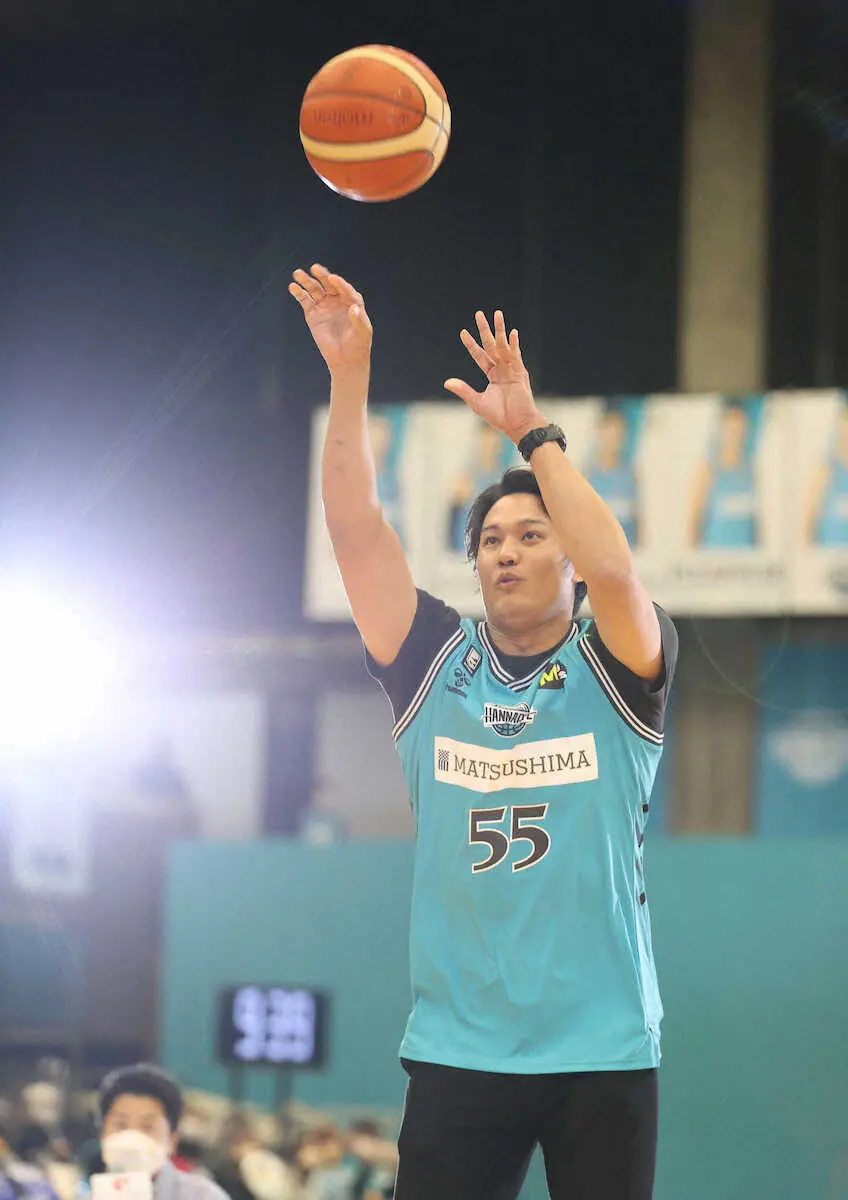 ハーフタイムイベントではフリースローに挑戦し、ラスト3投目に見事成功。「1本も決められなかったらどうしようと思っていた」。ガッツポーズし、観衆からは大きな拍手を送られた。