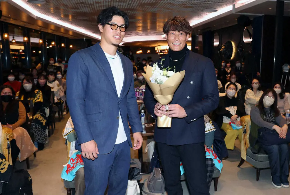 阪神・佐藤輝明内野手(23)が21日、契約する健康化学メーカー・ファイテン社のファンミーティングで今季限りで現役を引退した糸井嘉男氏(41)と再会し、来季3年目の爆発を予言された。村神様”ならぬ“輝様”への進化に太鼓判を押され、期待に応える飛躍を誓った。