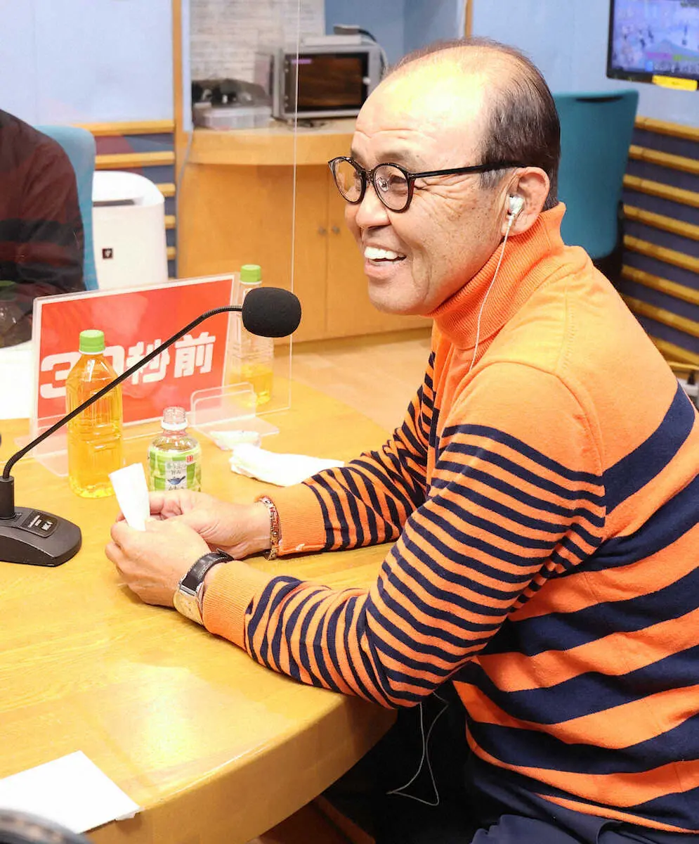 MBSラジオ「森たけしのスカタンラジオ」に出演した岡田監督(撮影・岸 良祐)