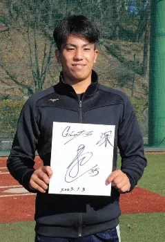 新年に1年間のテーマを一文字の漢字で表現することが恒例行事。プロ1年目の漢字は「深」とし、「プロ野球選手として自分を一つの作品として深めていきたいなという思いがあって。それは自分自身のプレー一つ一つを深みを出していくというか。打つ、アウトになる、三振一つにしてもその内容というところで、濃くするというか。深化、普通の進化って進むほうの進化だと思うんですけど、それを深いにして。自分を深めていくという意味で深いにしました」と語った。
