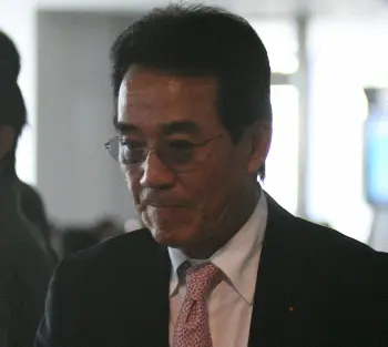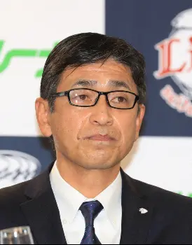 04年、リーグ優勝を決め、落合監督(左)から渡されたトロフィーを高々と掲げる谷繁