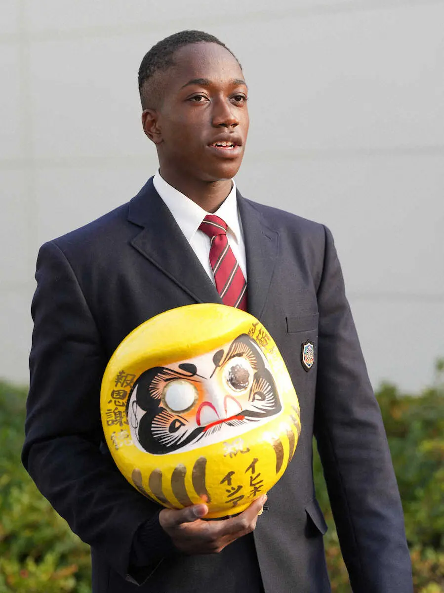 ソフトバンクの新人5選手が5日、福岡県筑後市の「若鷹寮」に入寮した。ドラフト1位のイヒネ・イツア内野手(18=愛知・誉高)は所属していた少年野球チームから贈られた「だるま」を持参した。