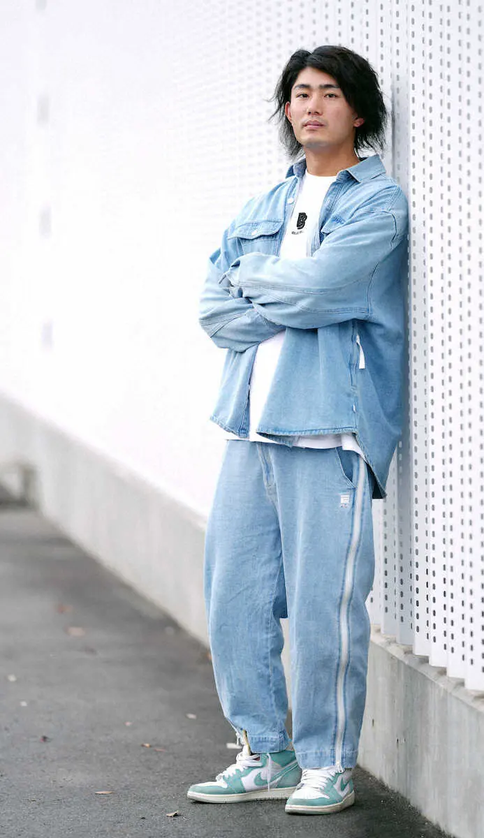 西武・今井 上下デニムのセットアップで心も体も獅子色に染める 好みは流行りの大きめのサイズ