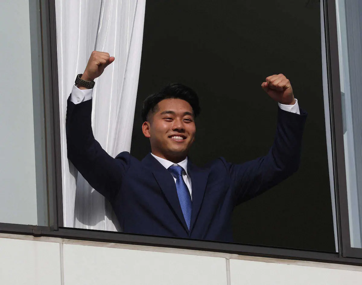 西武の新人3選手が6日、埼玉・所沢市内の若獅子寮に入寮した。ドラフト1位の蛭間拓哉外野手(22=早大)はオーダー枕とマットレスに、早大時代に指導を受けた徳武コーチからの色紙、群馬県のマスコットキャラクター「ぐんまちゃん」のぬいぐるみを持参し「本当にわくわくした気持ちでいっぱい。寮の部屋が凄くきれいで野球をやる環境としては最高だなと思いました」とライオンズブルーのネクタイを身につけ、目を輝かせた。