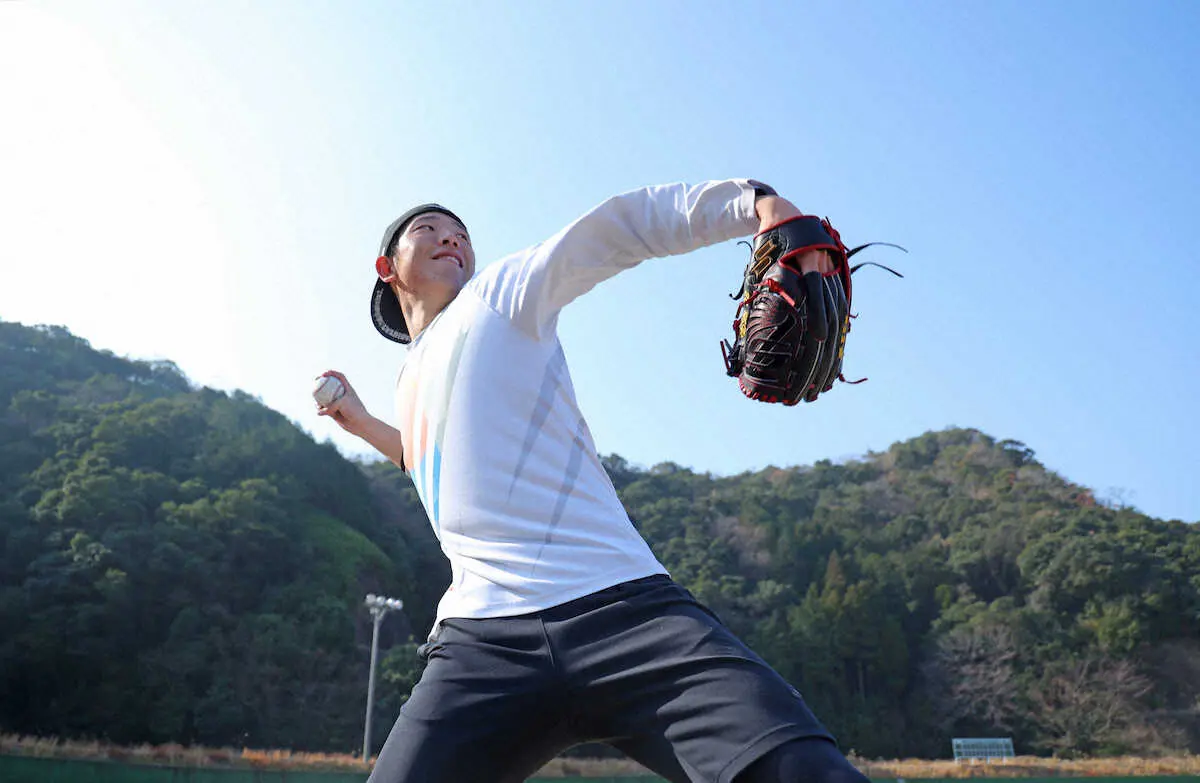宮崎県延岡市の母校・聖心ウルスラ学園で行っている自主トレを公開した右腕。「1週間ちょっと早く仕上げようと思っています」と今月中旬からはWBCで使用される大リーグ公式球でブルペン投球を行う予定だ。