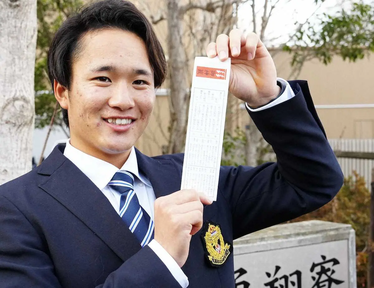 年末年始は静岡に帰省。菊川市の大頭龍神社で初詣し、「活躍できることを第一にお願いした」という。おみくじは1回目で「中吉」を引くと「大吉が出るまで」と執念を発揮した。走攻守そろう即戦力として期待され「内外野問わずどこでも勝負したい。まずは首位打者を狙い、その上で盗塁も果敢に狙っていけたら」と力を込めた。