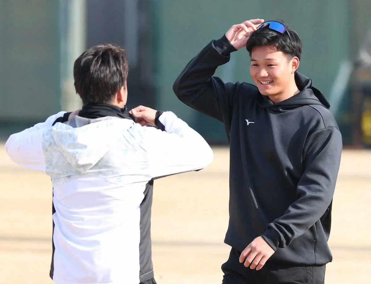この日は寒空の下、キャッチボール、トスバッティングでボールの感覚を確かめた。入寮日だった前日も軽く体を動かし、夕食はステーキに舌鼓を打ちながら、ご飯を大盛り2杯たいらげた。「これからやらなきゃいけないなという意識がだんだん上がってきた」。高校通算57本塁打、東都大学野球リーグ9本塁打のスラッガーは、一歩ずつ、夢の階段を上がっていく。(倉世古 洋平)