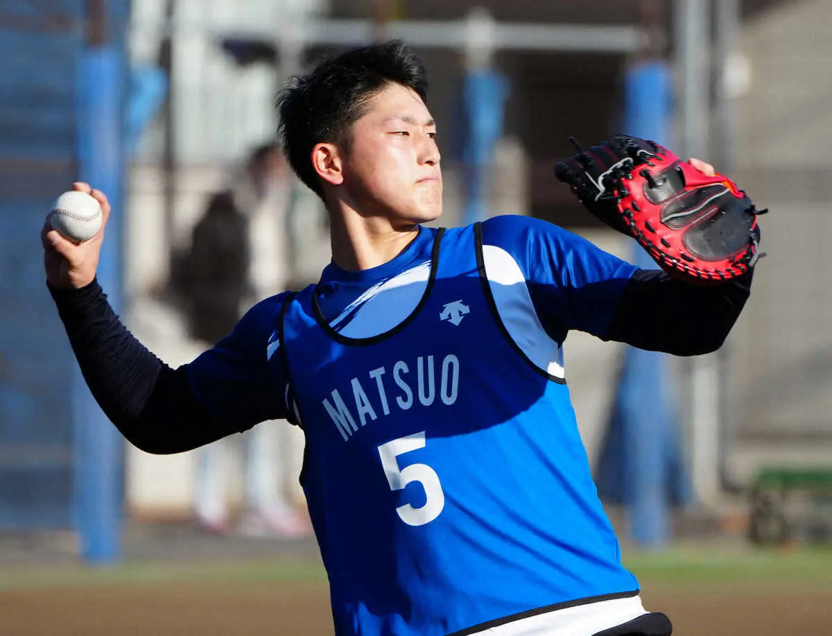 DeNAドラ1・松尾 赤く燃える 赤ミット&赤バット持参「自分の考え大事に持って頑張る」