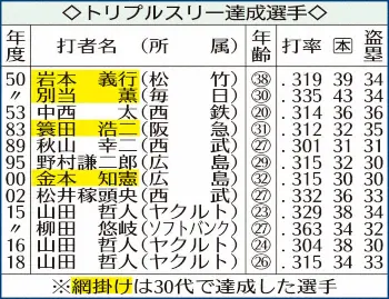 トリプルスリー達成選手 Photo by スポニチ ヤクルト・山田、V3へ「結果も残すのが主将として理想の姿」自らに課した3… ギャラリーで見る この記事のフォト 2023年01月11日の画像一覧 もっと見る 2023年01月11日の画像をもっと見る
