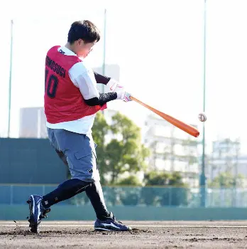 バットは吉川尚輝(巨人)モデルをベースにグリップの太さを自分用に調整したオレンジ色で、大学時代よりも10グラムほど軽くしたプロ仕様。「この時期は振ることが一番大事なので、とにかくフルスイングで」と体を大きく使いながらも安定した軌道で大きな飛球を飛ばした。