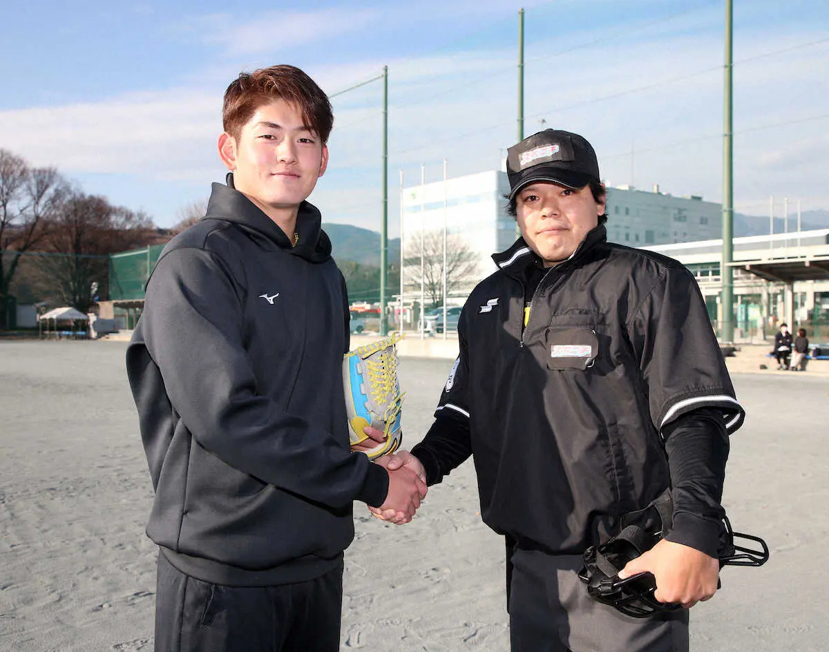 風間の父・啓介さん(53)の地元である山梨市の小原スポーツ広場。グラウンドに足を踏み入れると、準備体操をしていた右腕は「チワッ!」とあいさつ。捕手役を務めてくれた兄の球星(22)と入念にキャッチボールが進んだ。こちらもフル装備で準備万端。いざ。右手で風間を指さし、NPB審判員だった16年以来7年ぶりに「プレーボール!」の声を張り上げた。