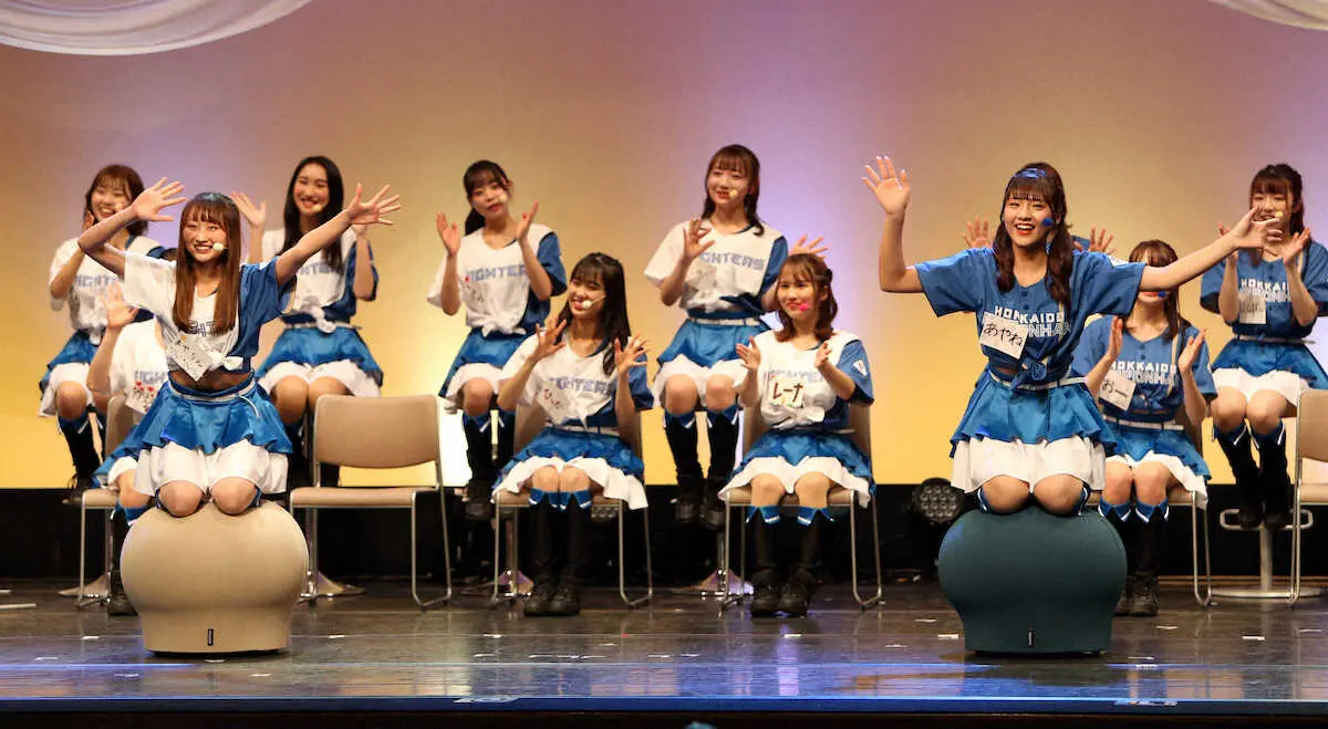 <2022 ユーキャン新語・流行語大賞>「きつねダンス」でトップ10入りを果たしたファイターズガールら。右から2人目が滝谷美夢さん(撮影・村上 大輔)