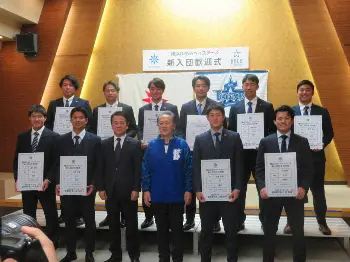 DeNAルーキー10人が横須賀市役所で歓迎式 ドラ1松尾、目標として「新人王」の色紙掲げる