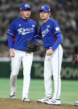 高祐錫は昨季42セーブでタイトルを獲得。150キロ台後半の直球で押すだけでなく、ここぞで変化球を交えるなど大きく成長した。21年東京五輪は準決勝・日本戦の8回に投げ、3失点で敗戦投手に。リベンジに燃えている。1月に結婚したが、相手は李政厚の妹。図らずも「義兄弟」となった24歳と同い年の2人が、投打で韓国代表をけん引する存在なのは間違いない。