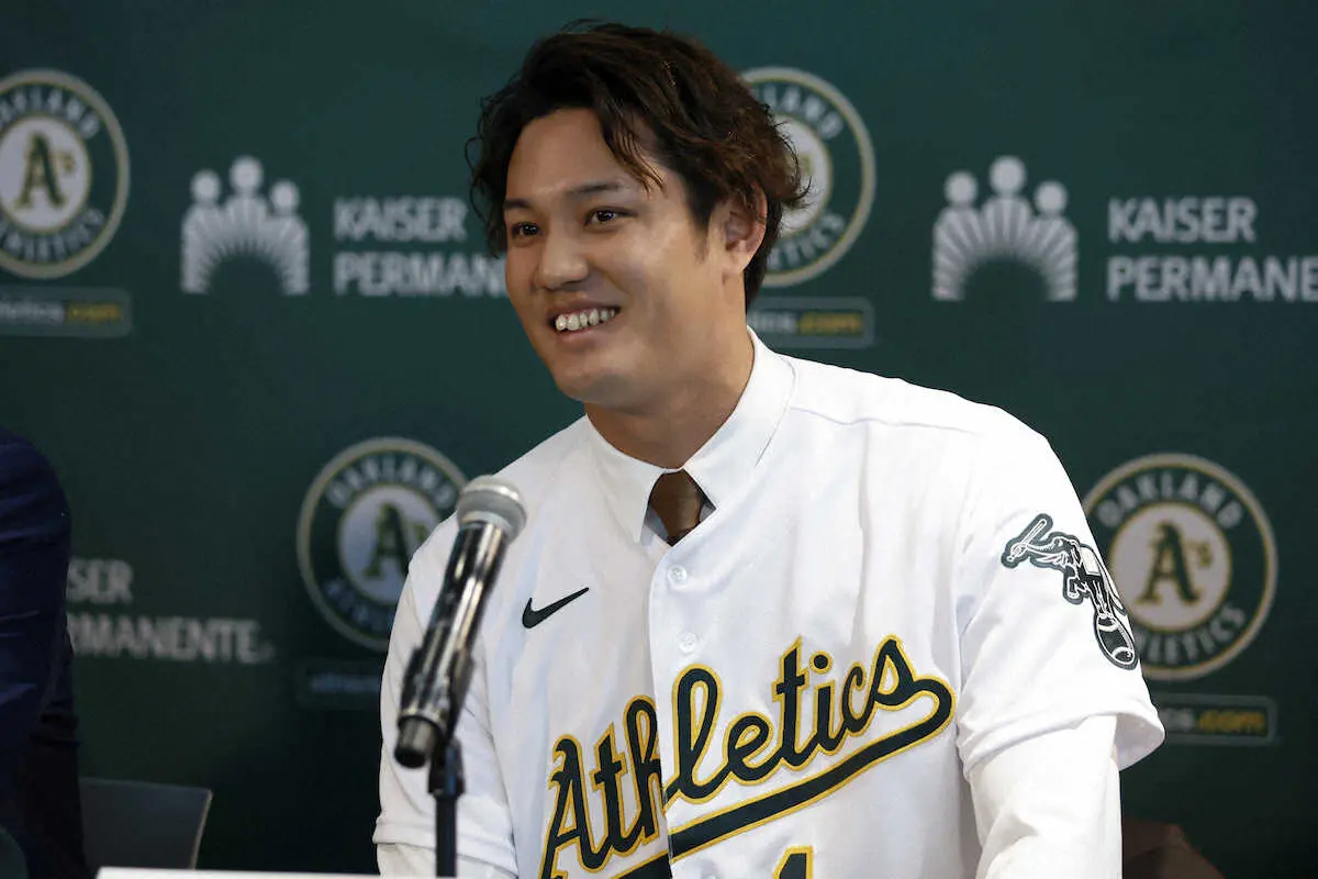藤浪 アスレチックス入団会見 英語で1分25秒スピーチ「富士山の“フジ”と呼んで」