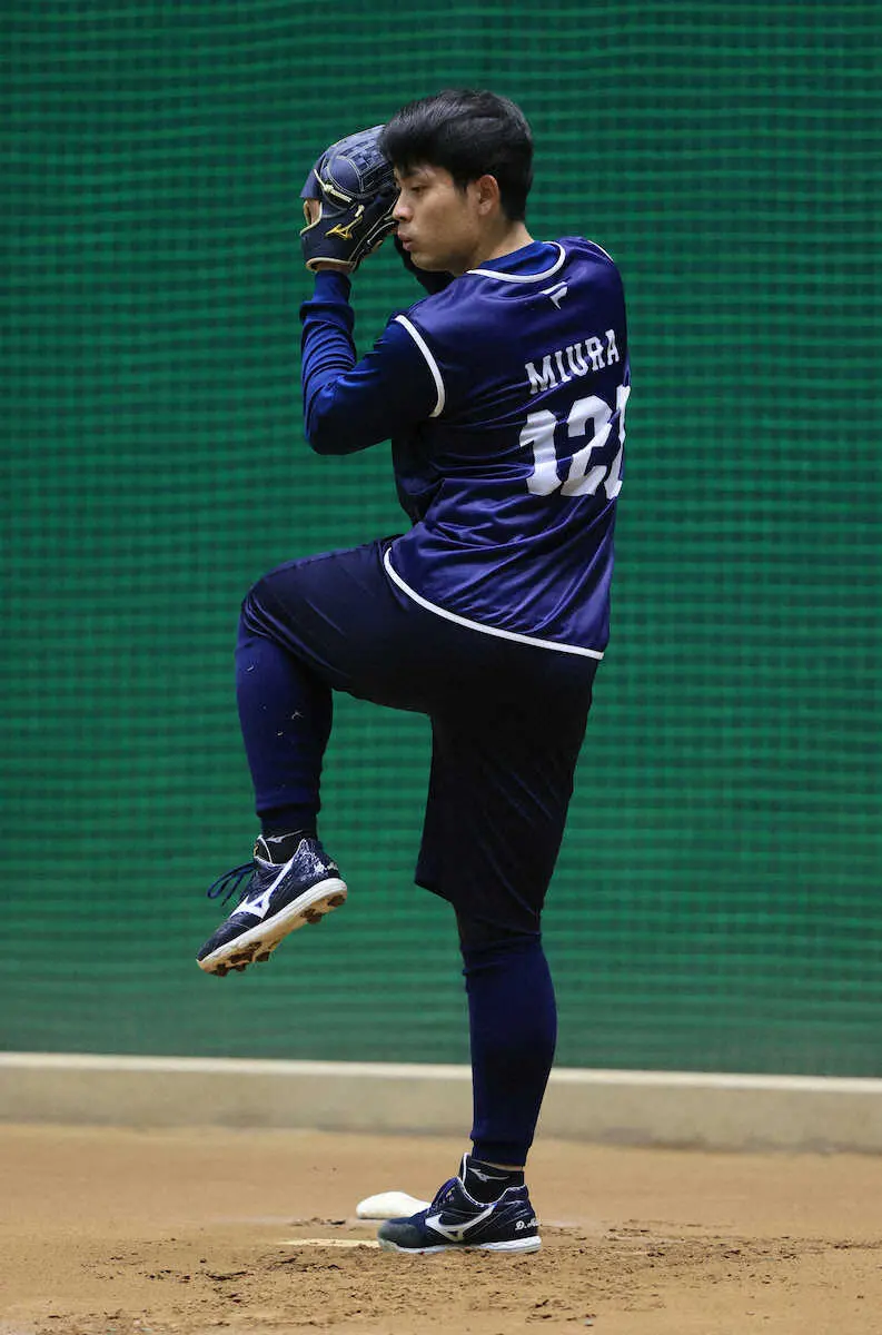 「タイミングが取りづらいと思う」という理由で、中京大4年の夏に2段モーションを取り入れた。軸足により体重が乗り、直球の威力が増した。回転数はプロでもトップ級の2800。愛知大学野球春季リーグで2・45だった防御率を秋季は1・74に改善した。昨年は育成出身の水上が新人王を獲得。同右腕は入団年の21年5月に支配下登録を勝ち取った。「水上さんが憧れの選手。できれば水上さんよりも早く(支配下に)」。育成入団も上等だ。三浦をヨ・ロ・シ・ク。(神田 佑)