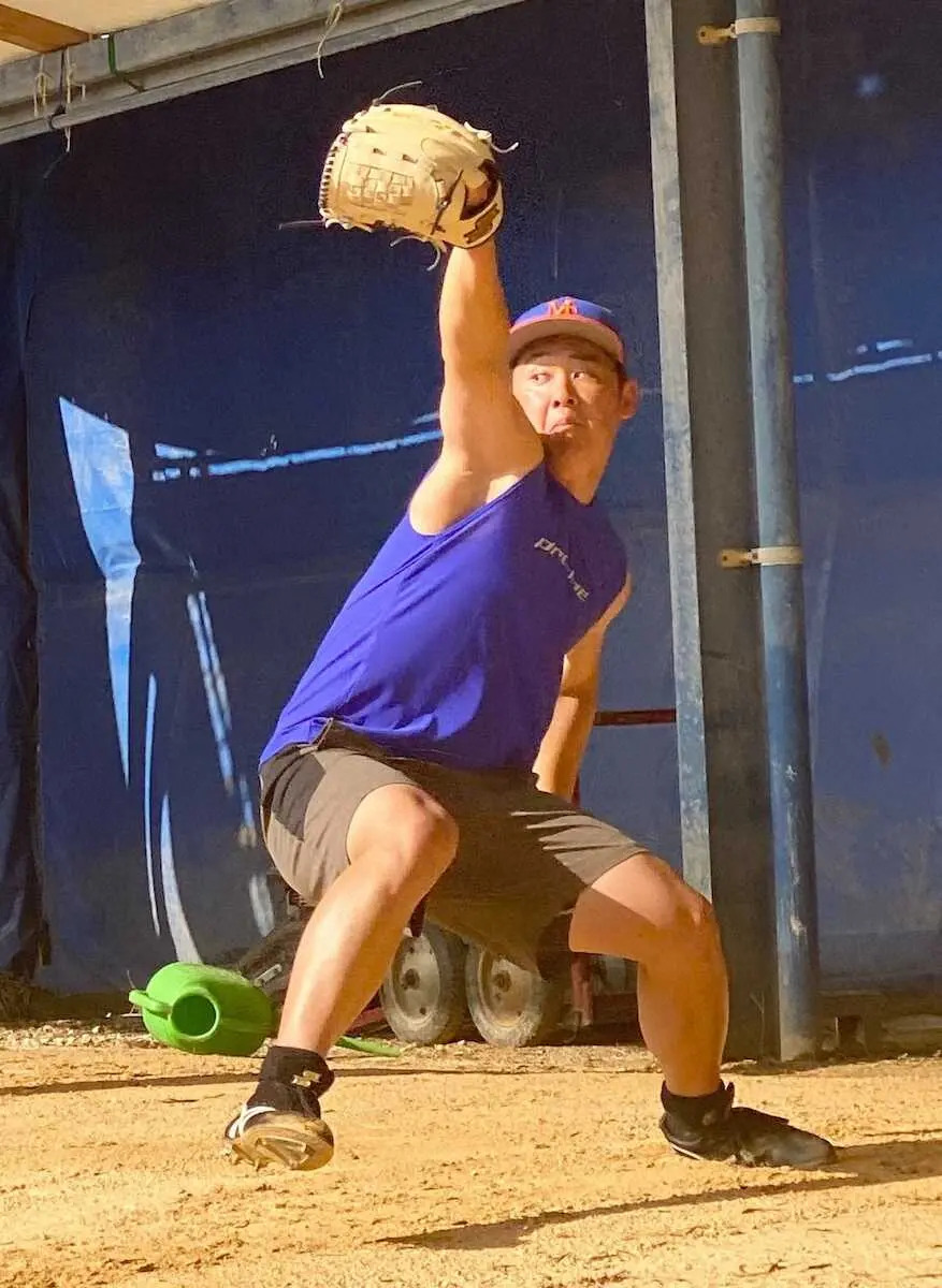 沖縄県内で自主トレを行うロッテ・鈴木昭汰投手(球団提供)