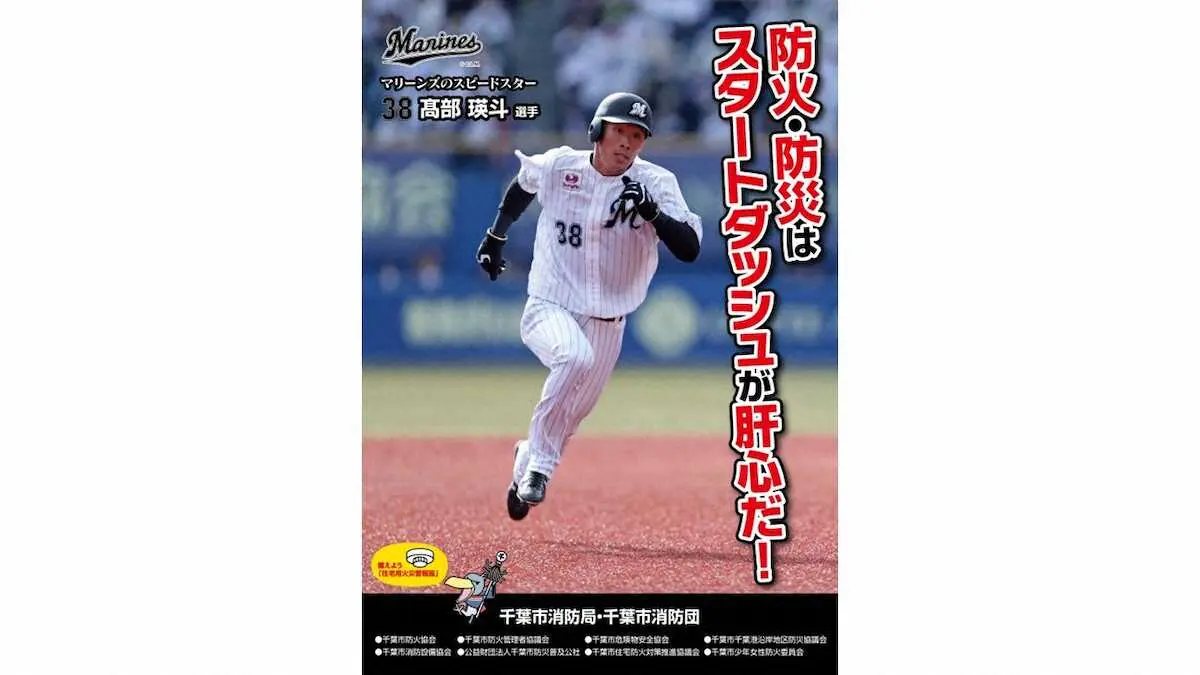 千葉市消防局は「火災の発生しやすい時期を迎えるに当たり、家庭や職場・地域の防火意識の高揚を図り、尊い命と貴重な財産の損失を防止することを目的とし、火災予防の更なる注意喚起を促すため、ホームチームであり、市民の皆様に身近な千葉ロッテマリーンズの選手を起用することで、火災予防のさらなる注意喚起を促すことができるのではないかと考え作成しました。千葉ロッテマリーンズ高部瑛斗選手の俊足を活かしてチームが勢いづくように、千葉市消防局も火災の取組に一層力を入れていきます」とコメントした。