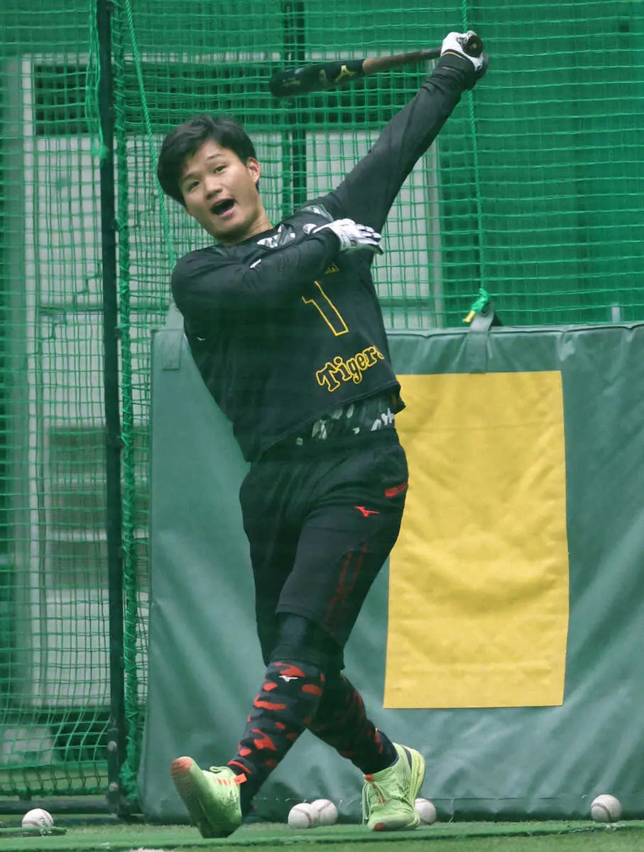 右足肉離れで別メニュー調整が続く阪神ドラフト1位・森下翔太外野手(22=中大)が27日、新人合同自主トレで初の室内フリー打撃練習を行った。甲子園球場の室内練習場で、打撃投手相手に鋭い打球を連発。既に今春キャンプは2軍スタートが決定しているものの全快に向けて着々と調整を進める。右翼の開幕スタメン最有力候補が、今春初実戦となる2月11、12日に予定される紅白戦出場に向けてペースを上げてきた。