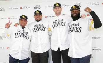 ソフトバンクのガンケル、ホーキンスが入団会見 日本語、ヒゲと個性それぞれ