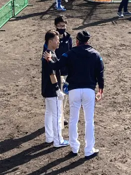 日本ハム 伝説の“片膝トリオ”名護に再来!! 新庄監督、稲葉GM、森本コーチが外野にそろい踏み