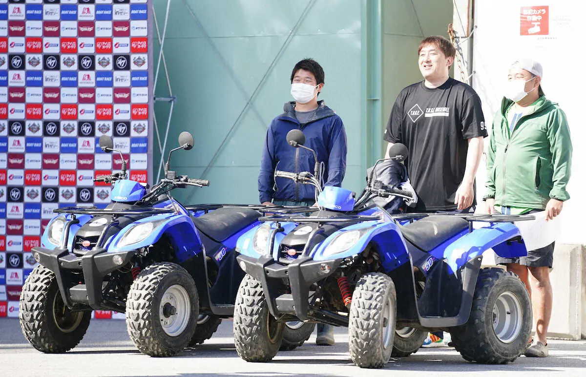 同時に秘密兵器も導入される。球場やブルペンから室内練習場まで距離は約300メートルだが、急勾配&急カーブのため徒歩での往復はかなりハード。そこで石井監督の移動用に4輪バギーが用意された。ダイエットのために基本的には歩きたいそうだが「ブルペンとか室内を急いで移動する時に乗ります」と指揮官。バギーで南国を疾走しながら、選手の調整を入念にチェックする。(重光 晋太郎)