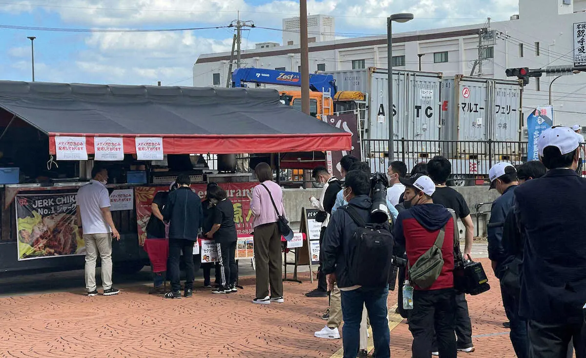 日本ハムは就任1年目だった昨年のキャンプに続き、新庄監督から報道陣にランチが振る舞われた。この日はチキンのグリルが乗ったカレーで、正午過ぎから提供したキッチンカーに報道陣が列をつくった。