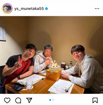 ヤクルト・村上宗隆 チームメートの奥村&宮本から23歳誕生日「お祝いしてくれましたー!!」
