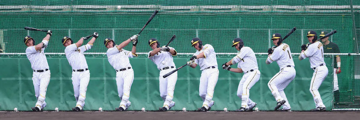 フリー打撃を行った阪神・森下の連続合成写真