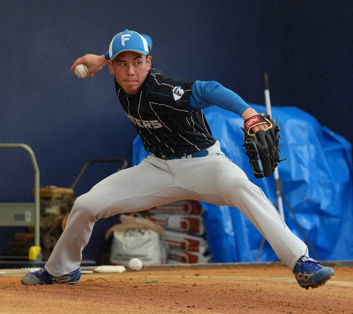 後ろでは新庄監督、稲葉篤紀GMらが見守り「普通に力が入りました。上沢さん、伊藤さんも投げていたので緊張していた部分はあった」。4日に再びブルペン入りし、11日の紅白戦で実戦初登板を予定する。「球数を増やしながら、試合を想定した投球ができれば」と先を見据えた。