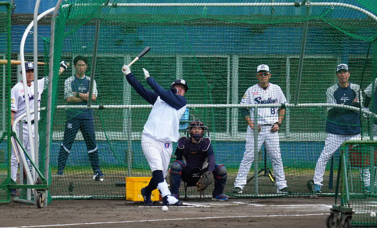 <ヤクルト浦添キャンプ>フリー打撃で快音を響かせる村上(撮影・沢田 明徳)