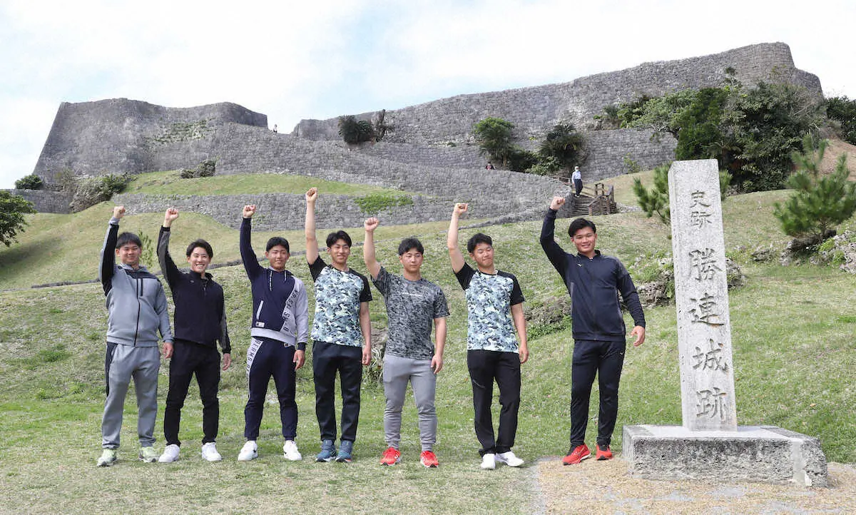 阪神の新人7選手がキャンプ休日の3日、沖縄・うるま市の世界遺産「勝連城跡 あまわりパーク」を訪問した。ドラフト1位の森下翔太外野手(22=中大)は、「沖縄は初めてだったので、観光できて良かった」と振り返った。