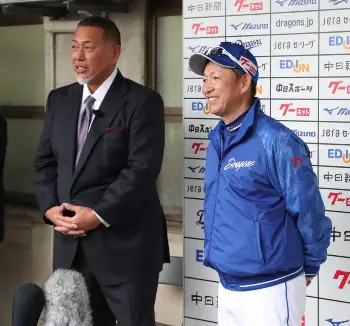 <中日2軍キャンプ>中日2軍キャンプを視察に訪れ、片岡2軍監督(左)と練習を見つめる清原氏(撮影・椎名航) Photo by スポニチ 清原氏 PL後輩の中日・片岡2軍監督を激励 前日の立浪監督に続き ギャラリーで見る この記事のフォト 2023年02月05日の画像一覧 もっと見る 2023年02月05日の画像をもっと見る