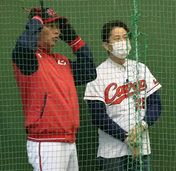 <広島キャンプ>広島キャンプを訪れ新井監督(左)と話す谷原章介 (撮影・奥 調) Photo by スポニチ 広島・新井監督 “ウグイス嬢”大変身でファンも爆笑&喝采 「MC野間です」… ギャラリーで見る この記事のフォト 2023年02月05日の画像一覧 もっと見る 2023年02月05日の画像をもっと見る