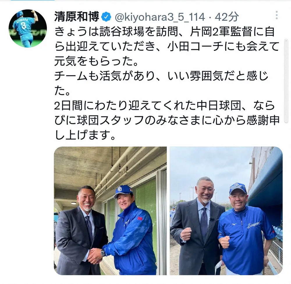 清原和博公式ツイッター(@kiyohara3_5_114)から 清原和博氏「伝説の乱闘」因縁の相手“用具係の平沼さん”と再会「嬉しかっ… ギャラリーで見る この記事のフォト 2023年02月05日の画像一覧 もっと見る 2023年02月05日の画像をもっと見る