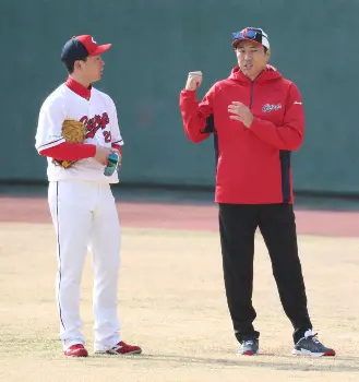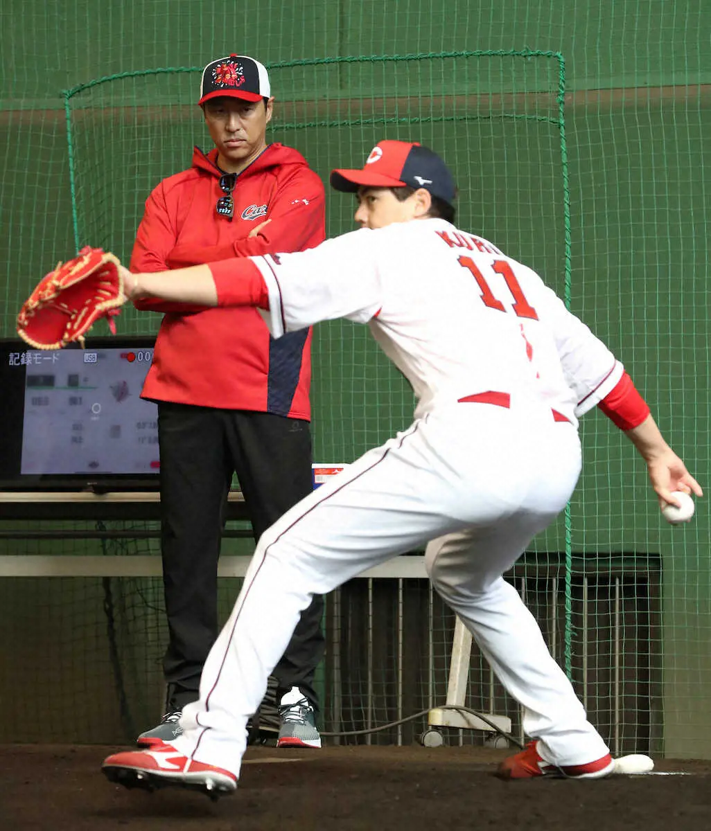 ブルペンでの投球練習では床田、九里をはじめ、投手陣に自ら歩み寄り、アドバイスを送った。
