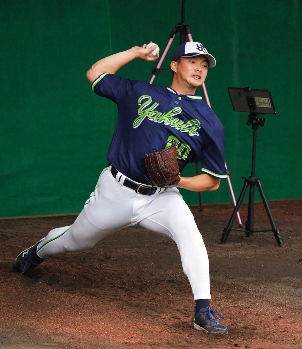 神宮球場では21年から8台の専用カメラによる最新の映像解析システム「ホークアイ」を本格導入。投手のピッチデザインに活用しリーグ連覇につなげたが、キャンプ地には測定機器はなかった。今キャンプ3度目のブルペン入りとなった小川も、初めて使用。「外角低めを狙って真ん中高めに抜けた球が、回転効率が良かったりした」と感覚とのギャップを実感した。「スピードや回転数が瞬時に見られるので便利」と高津監督も感謝。向上心旺盛な24歳の心配りが3連覇への助けとなる。(青森 正宣)