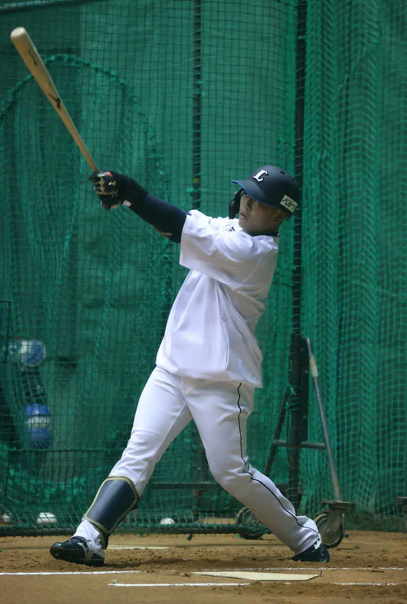 西武ドラフト1位の蛭間(早大)はフリー打撃で鋭いライナー性の当たりを連発。「思っている以上に力が入ってしまったけど、先輩方がいろいろ教えてくれてやりやすかった」と感謝した。