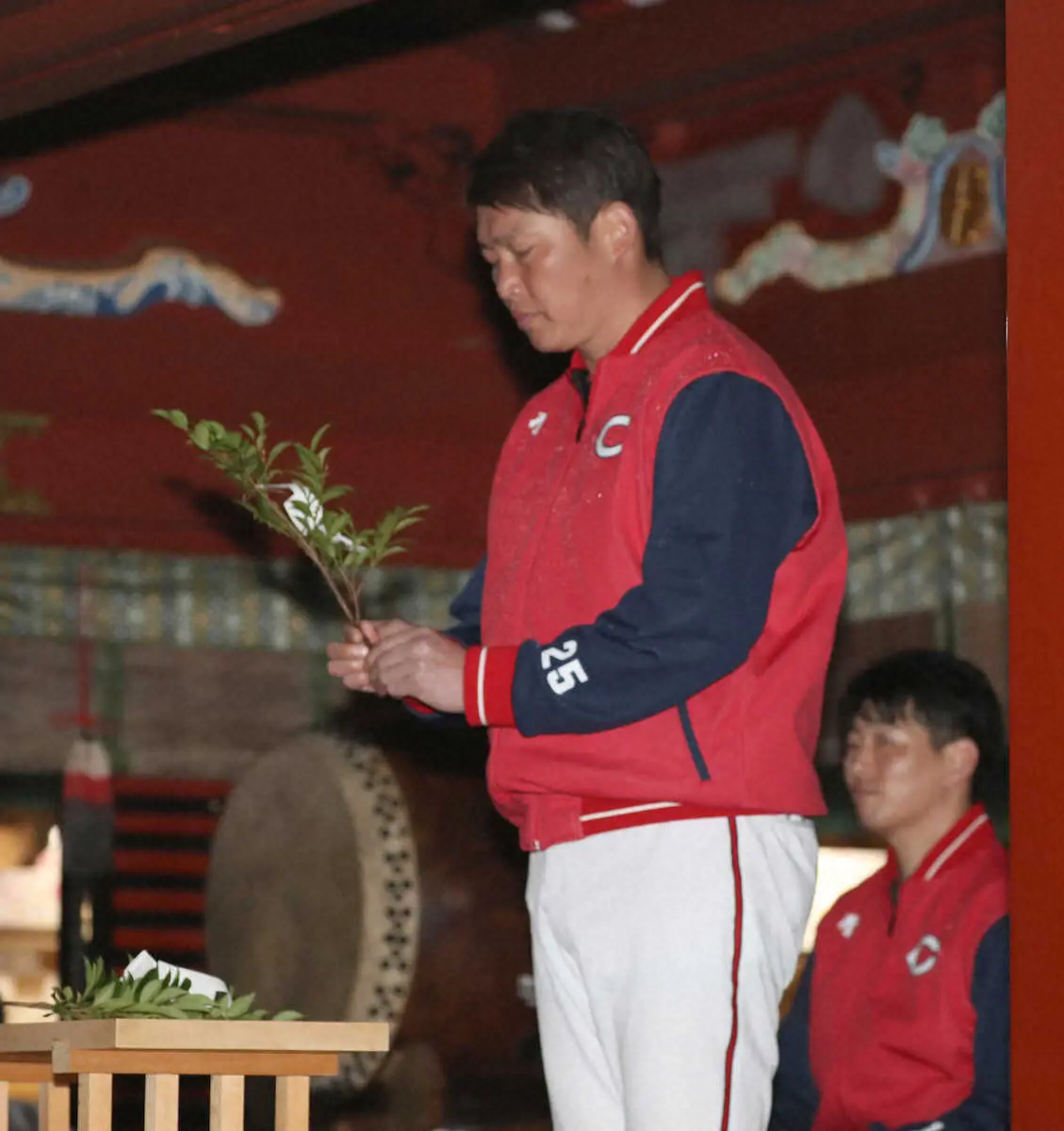 広島・新井監督、高2軍監督、選手会長の大瀬良が宮崎県日南市の鵜戸神宮で必勝祈願を行った。崖下にある亀の形をした巨大な岩に左手で玉を投げ、30センチ四方のくぼみに入ると願いがかなうといわれる「運玉」にも挑戦。新井監督は2投目で成功し「あまり投げるのは得意な方ではなかったんですが、今年は凄く運のいい年なんでしょうね」と笑顔を見せた。