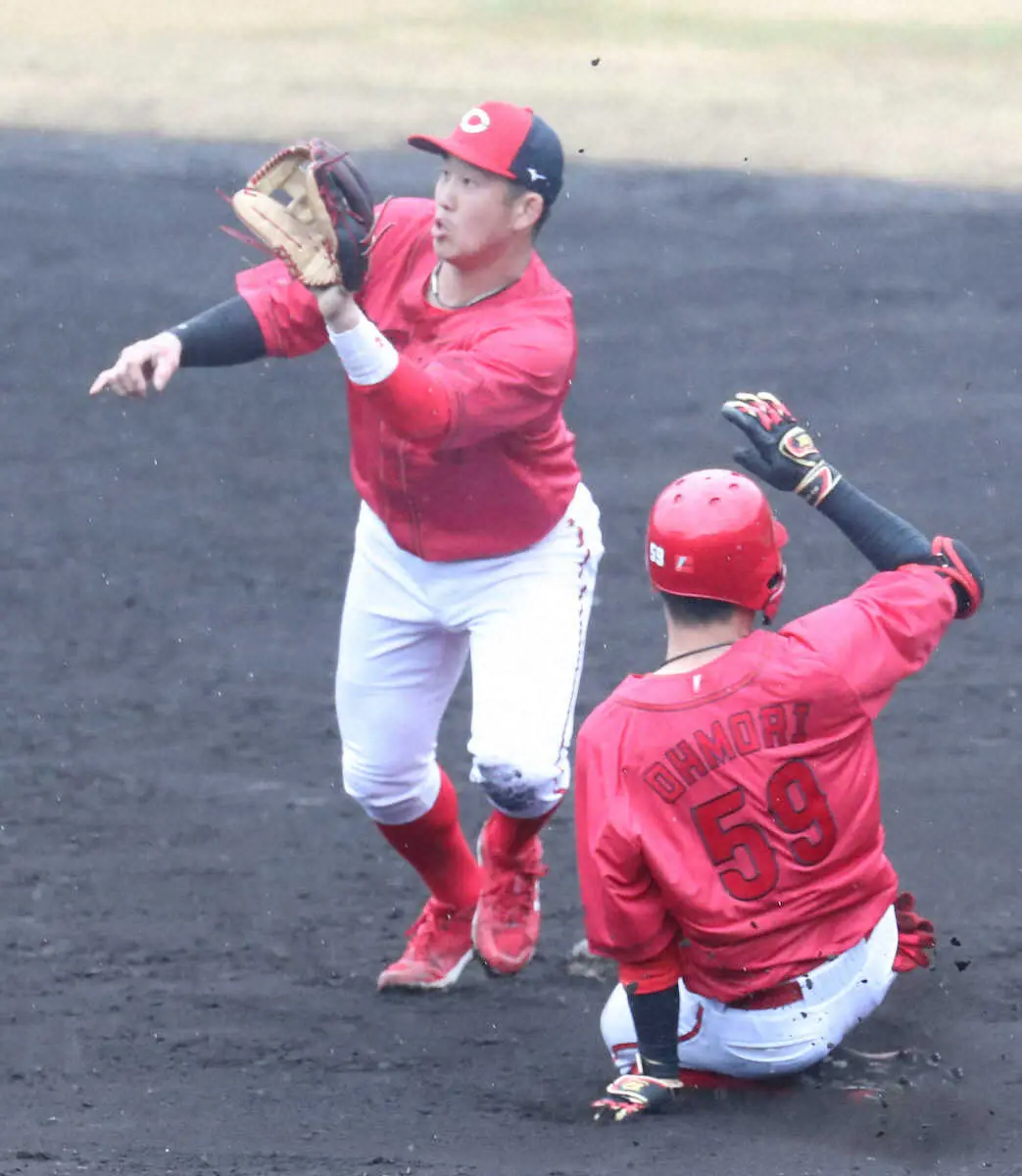 遊撃では田中の復活や、3年目の矢野の急成長が見られれば、選手起用の選択肢は増える。小窪内野守備走塁コーチも「(三塁予定の新外国人)デビットソンも含めて誰がどうなるか分からないし、小園は二塁、三塁と複数ポジションの備えをやっておこうということ」と説明した。
